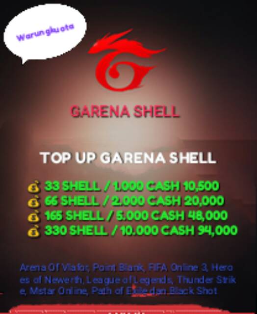 165 shell berapa diamond ff. Klik disini untuk cek daftar harga cash shell terbaru garena indonesia terbaru di bulan agustus 2020. Klik tab voucher garena masukan kode voucher di kotak passwordpin lalu klik konfirmasi. Sekarang kamu sudah bisa melakukan top up cash garena free fire di tokopedia. Untuk membelinya kamu perlu melakukan top up voucher garena yang nantinya akan menjadi sebuah cash diamond untuk ditukarkan dengan item dan random box tersebut. Top up garena cash lebih mudah dan murah dengan berbagai promo di tokopedia. Login dengan akun garena atau facebook.