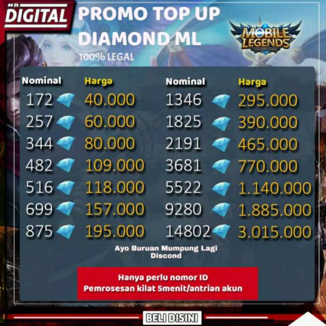 Terus kenapa kalo ilegal. Kamu juga bisa top up diamond ml murah dengan menggunakan. 100 original harga termurah kualitas terjamin free ongkir. Rekomendasi tempat beli diamond ff free fire murah. Diamond ml murah meriah legal 100 stock ready banyak langsung chatrp100000. Eitsss tunggu dulu iya ilegal lebih murah dan lebih banyak jumlah diamond ucash nya.