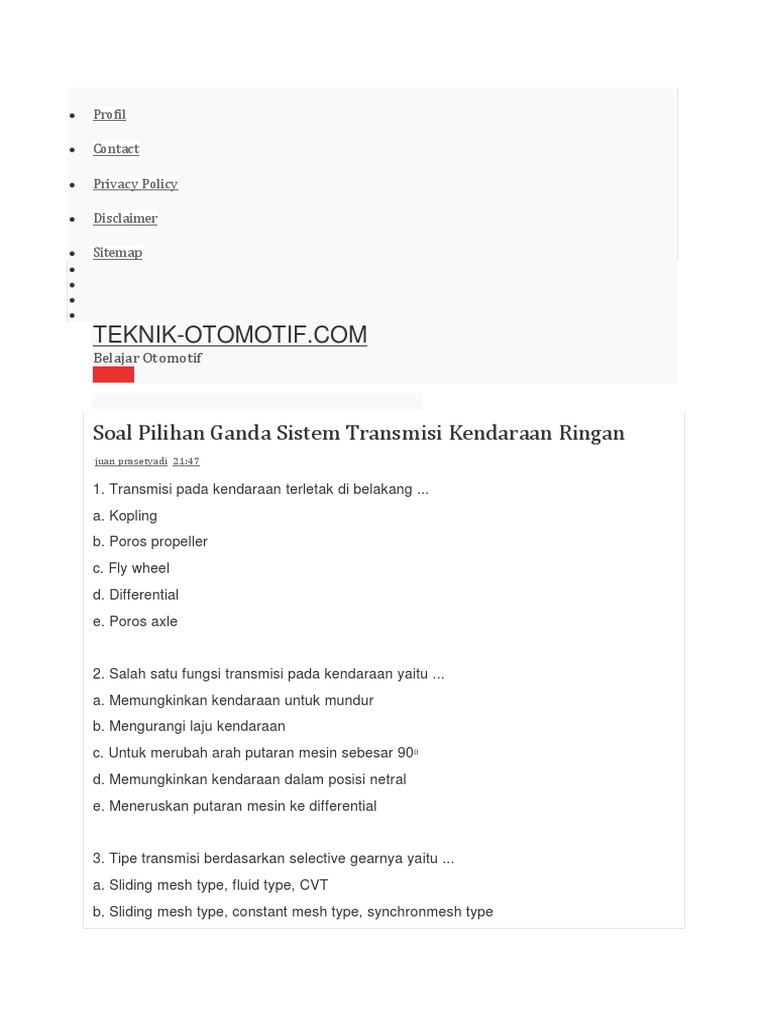 Namun yang termasuk transmisi manual adalah pada noi dan ii yaitu selective and planetary gear transmission. Oleh karena itu dikedua ujung poros ini akan dipasangkan universal joint. Transmisi pada kendaraan merupakan suatu unit pemindah tenaga yang berfungsi memvariasikan putaran rpm dan daya hp dari mesin menuju unit pemindah tenaga selanjutnya jenis ff dilanjutkan ke diferensial sedangkan jenis fr dan fwd dilanjutkan menuju poros propeler. Fungsi letak dan syarat kopling pada kendaraan seperti yang telah saya utarakan pada postingan postingan sebelumnya bahwa pada kendaraan terdapat salah satu sistem yang mentransfer tenaga dari mesin ke roda roda. Propeller shaft pada kendaraan rwd dan 4wd berfungsi untuk meneruskan tenaga putar dari output transmisi ke differential. Sisi mesin dengan poros input akan berbalik arah pada poros output b.